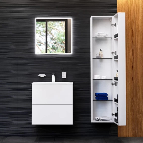 Механизм доводчика, Ящик, LED подсветка, Сенсорный выключатель, Система "Push-to-open", Зеркало, Тумба под раковину, Раковина