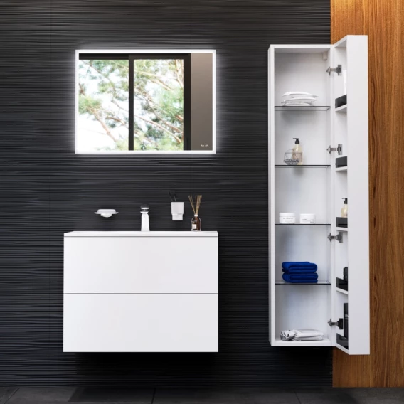 Механизм доводчика, Ящик, LED подсветка, Сенсорный выключатель, Система "Push-to-open", Зеркало, Тумба под раковину, Раковина