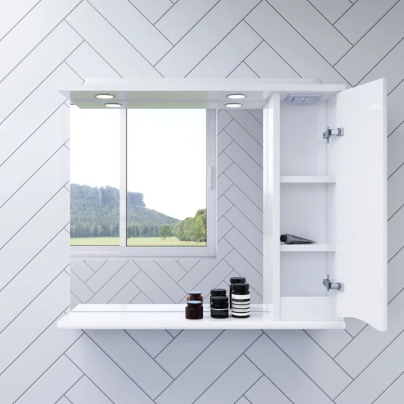 Механизм доводчика, Ящик, Полочка, LED подсветка, Зеркало-шкаф, Выключатель, Розетка, Тумба под раковину, Раковина