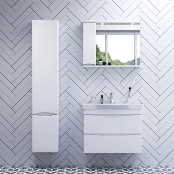 Механизм доводчика, Ящик, Полочка, LED подсветка, Зеркало-шкаф, Выключатель, Розетка, Тумба под раковину, Раковина