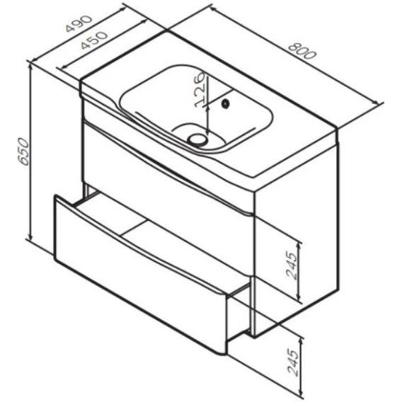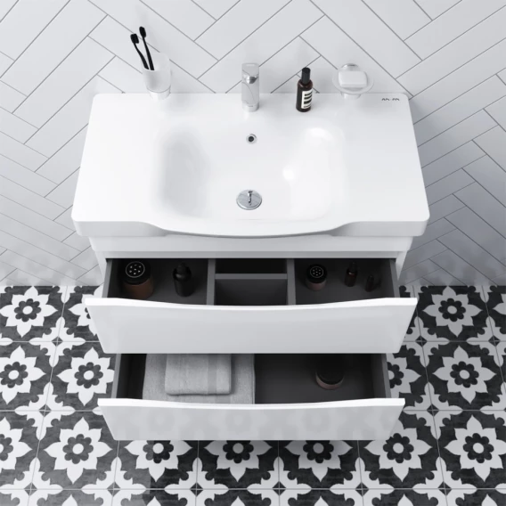 Механизм доводчика, Ящик, Полочка, LED подсветка, Зеркало-шкаф, Выключатель, Розетка, Тумба под раковину, Раковина