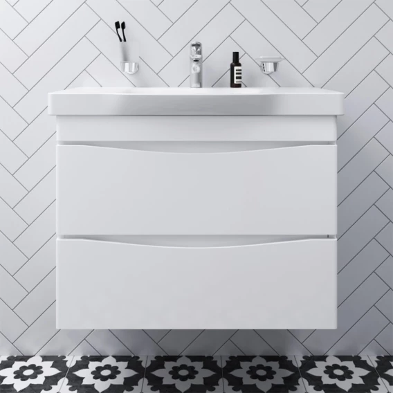 Комплект мебели белый глянец 80 см Am.Pm Like M80FHX0802WG + M80WCC0802WG + M80MPR0801WG