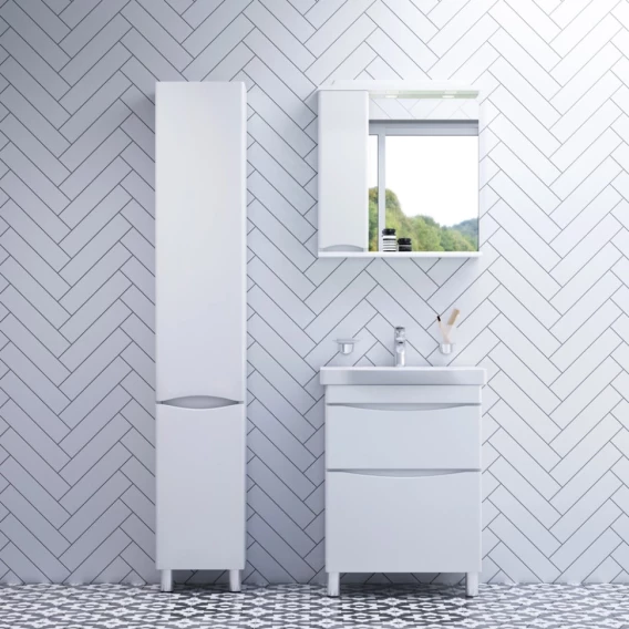 Механизм доводчика, Ящик, Полочка, LED подсветка, Зеркало-шкаф, Выключатель, Розетка, Ножки, Тумба под раковину, Раковина