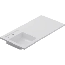 Подходит для интеграции с узкими стиральными машинами (глубиной от 32 до 45 см).Дизайнерская раковина из литьевого мрамора белоснежного цвета с бортиком, скрытым сливом и съемной мыльницей. Раковина оснащена просторной столешницей, на которой можно разместить косметические и гигиенические средства. Столешница защищает стиральную машину от повреждений и механических воздействий.