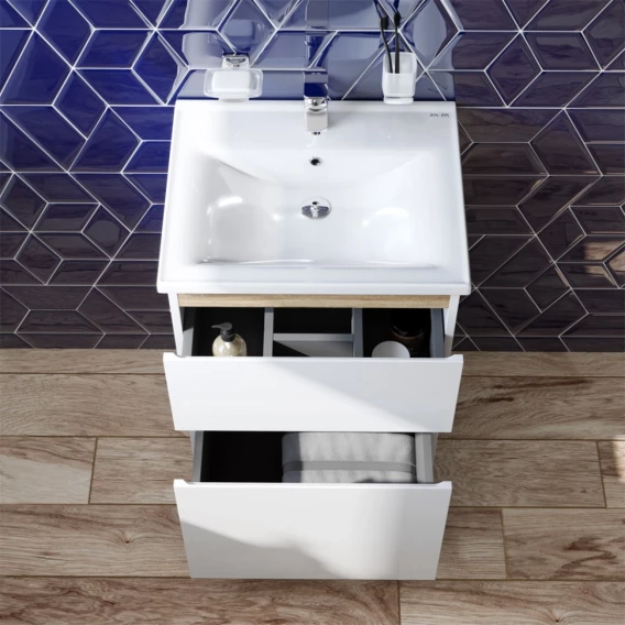 Тумба с раковиной белый глянец 55 см Am.Pm X-Joy M85AFSX0552WG + M85AWCC0552WG