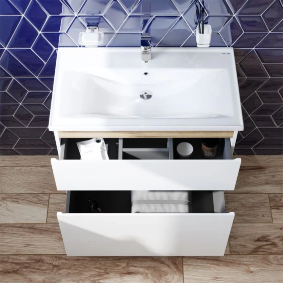 Тумба с раковиной белый глянец 80 см Am.Pm X-Joy M85AFSX0802WG + M85AWCC0802WG