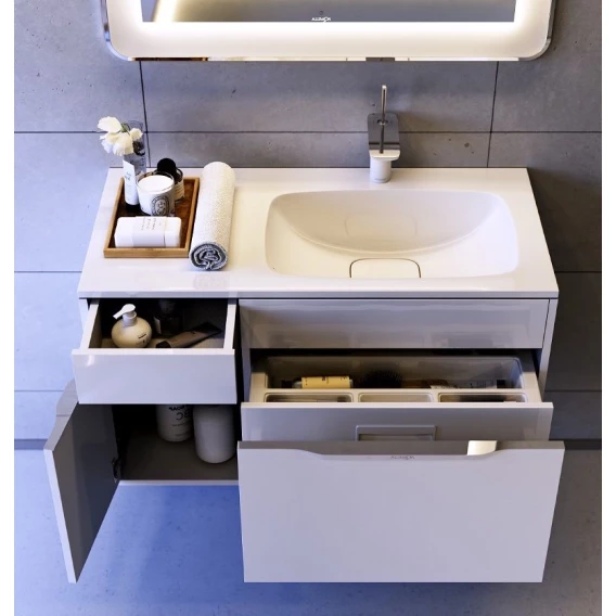 Механизм доводчика, Ящик, Ручки, Подсветка, Сенсорный выключатель, Зеркало, Тумба под раковину, Раковина