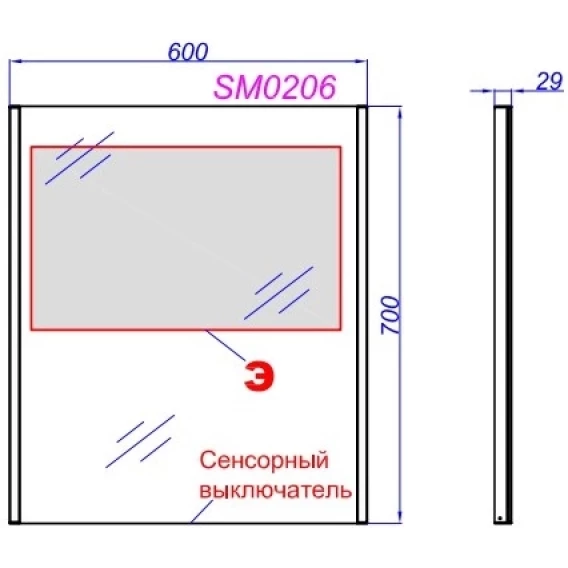 Механизм доводчика, Ящик, Подсветка, Сифон, Сенсорный выключатель, Зеркало, Столешница, Тумба под раковину, Раковина