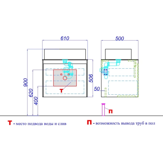 Механизм доводчика, Ящик, Подсветка, Сифон, Сенсорный выключатель, Зеркало, Столешница, Тумба под раковину, Раковина