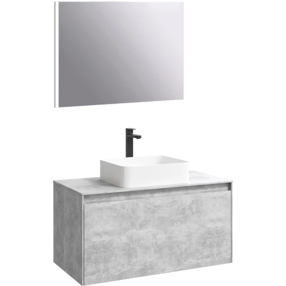 Комплект мебели бетон светлый 100 см Aqwella 5 Stars Mobi MOB0110BS + MOB0710BS + 4640021064269 + SM0210