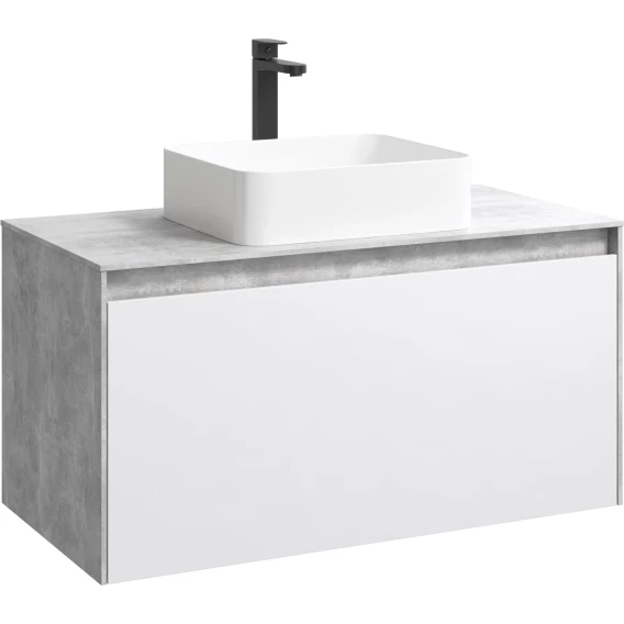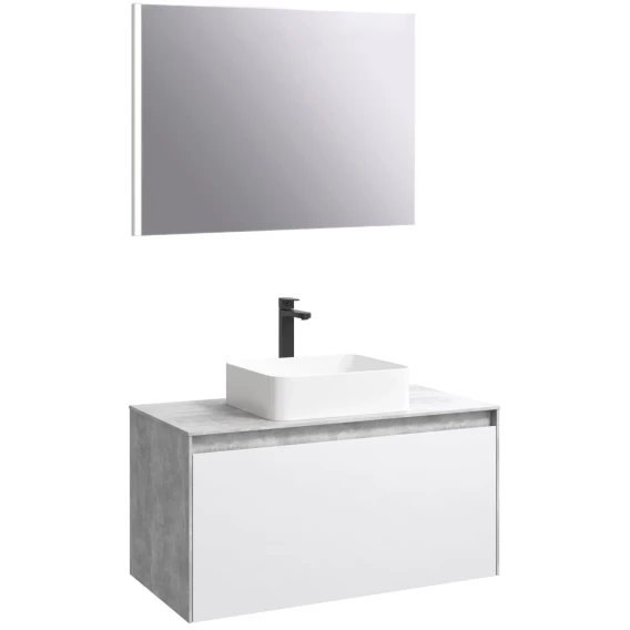 Комплект мебели бетон светлый/белый глянец 100 см Aqwella 5 Stars Mobi MOB0110BS + MOB0710W + 4640021064269 + SM0210