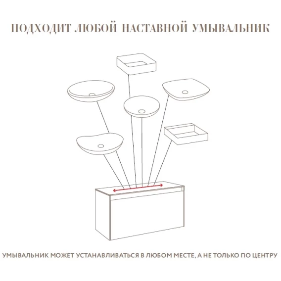 Механизм доводчика, Ящик, Подсветка, Сифон, Сенсорный выключатель, Зеркало, Столешница, Тумба под раковину, Раковина