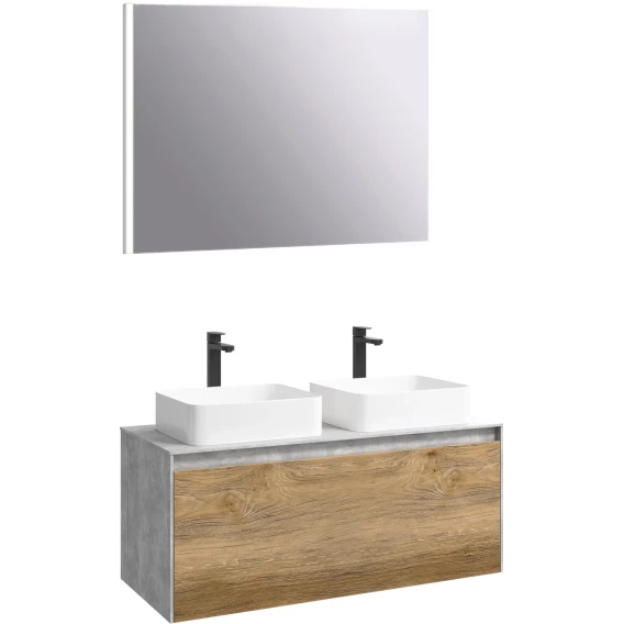 Комплект мебели бетон светлый/дуб балтийский 120 см Aqwella 5 Stars Mobi MOB0112BS + MOB0712DB + 641945 + 641945 + SM0210