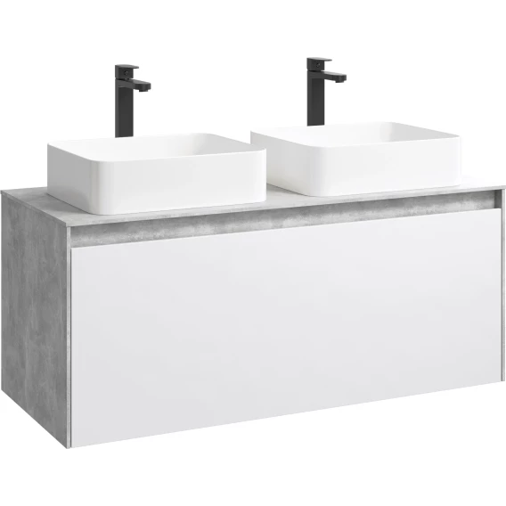Комплект мебели бетон светлый/белый глянец 120 см Aqwella 5 Stars Mobi MOB0112BS + MOB0712W + 4640021064269 + 4640021064269 + MOB0412 + MOB0717BS