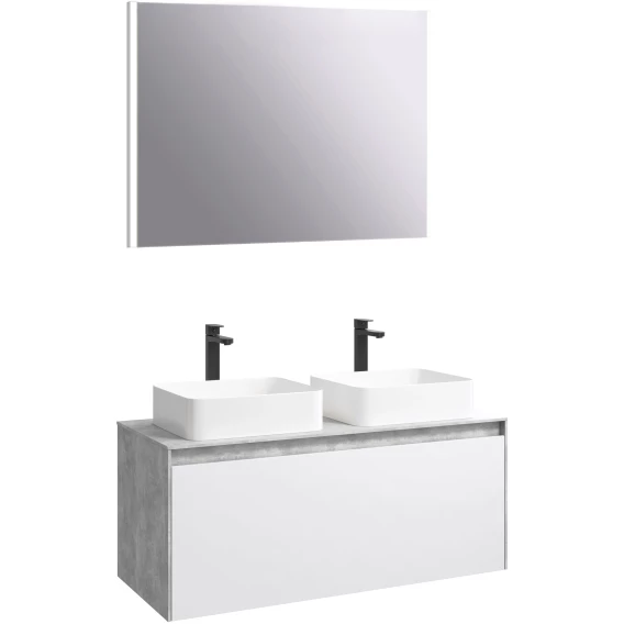 Комплект мебели бетон светлый/белый глянец 120 см Aqwella 5 Stars Mobi MOB0112BS + MOB0712W + 641945 + 641945 + SM0210