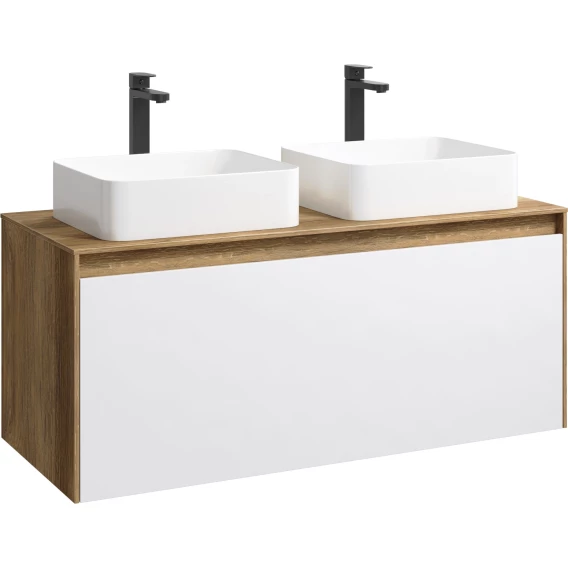 Тумба с раковиной дуб балтийский/белый глянец 120 см Aqwella 5 Stars Mobi MOB0112DB + MOB0712W + 641945 + 641945