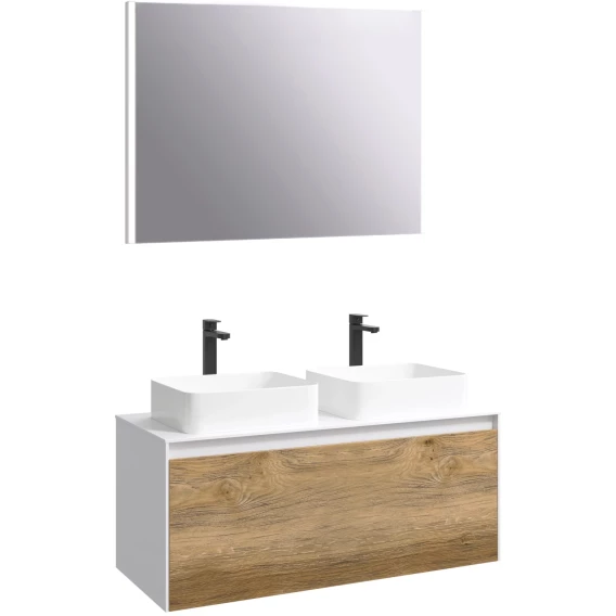 Комплект мебели белый глянец/дуб балтийский 120 см Aqwella 5 Stars Mobi MOB0112W + MOB0712DB + 641945 + 641945 + SM0210