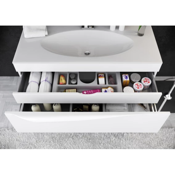 Механизм доводчика, Ящик, Полочка, Ручки, LED подсветка, Зеркало-шкаф, Сенсорный выключатель, Тумба под раковину, Раковина
