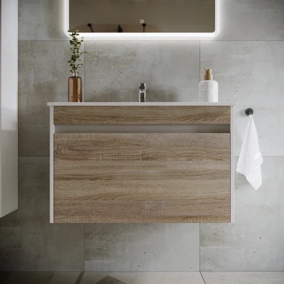 Крепление, Механизм доводчика, Ящик, LED подсветка, Сенсорный выключатель, Зеркало, Тумба под раковину, Раковина, Вилка