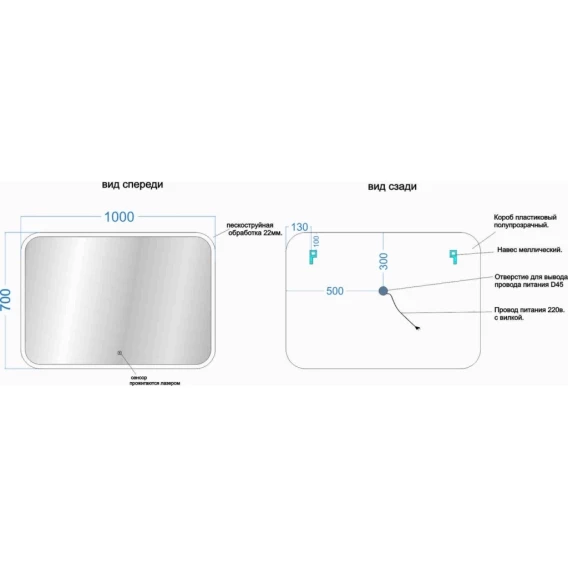 Крепление, Механизм доводчика, Ящик, LED подсветка, Сенсорный выключатель, Зеркало, Тумба под раковину, Раковина, Вилка