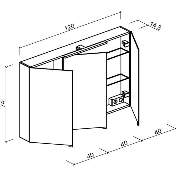 Крепление, Механизм доводчика, Ящик, Полочка, Ручки, Зеркало-шкаф, Выключатель, Розетка, Светильник, Тумба под раковину, Раковина