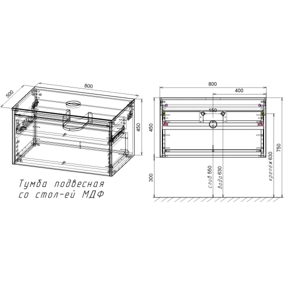 Механизм доводчика, Ящик, Столешница, Тумба под раковину, Раковина