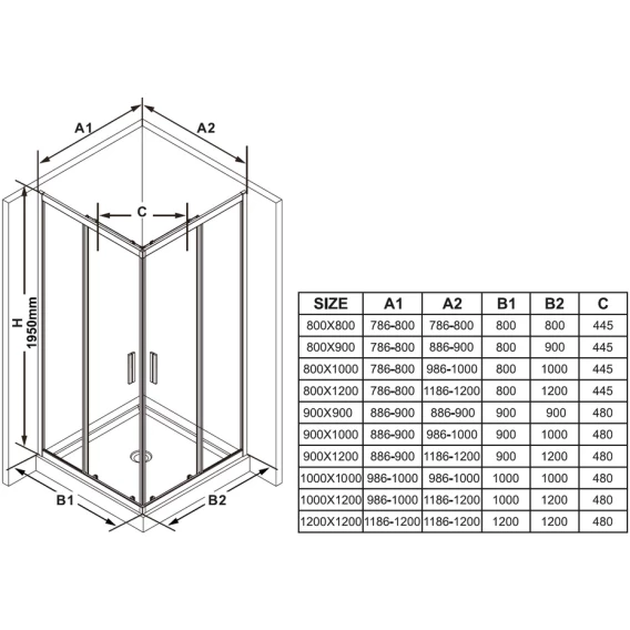 Душевой уголок 120x120 см Ravak Blix Slim BLSRV2K + BLSRV2K X1XMG0C00Z1 + X1XMG0C00Z1 прозрачное
