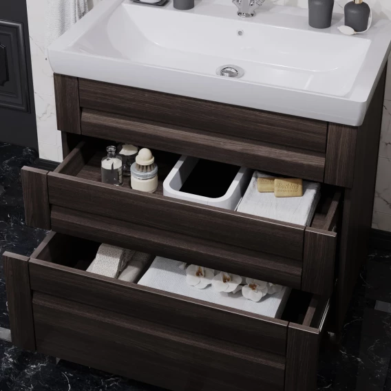 Механизм доводчика, Ящик, Полочка, Ручки, Подсветка, Ножки, Зеркало, Тумба под раковину, Раковина