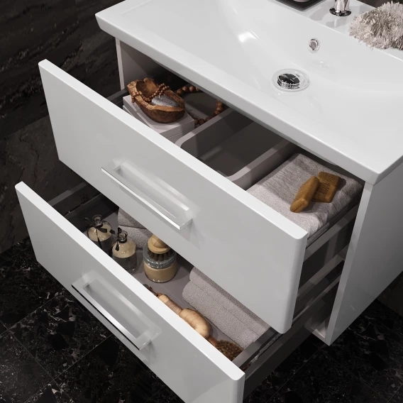 Механизм доводчика, Ящик, Ручки, LED подсветка, Выключатель, Розетка, Зеркало, Тумба под раковину, Раковина