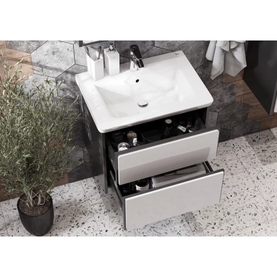 Тумба с раковиной белый глянец/антрацит 60 см Roca Ronda ZRU9302963 + 327472000