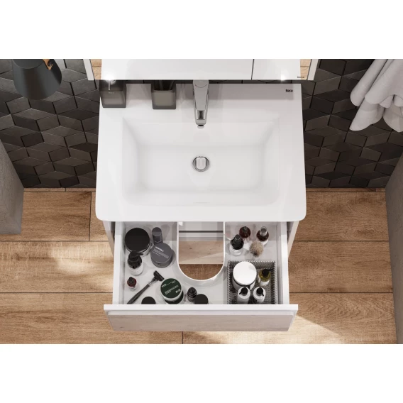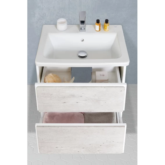 Тумба с раковиной бетон/белый матовый 60 см Roca Ronda ZRU9303002 + 327472000