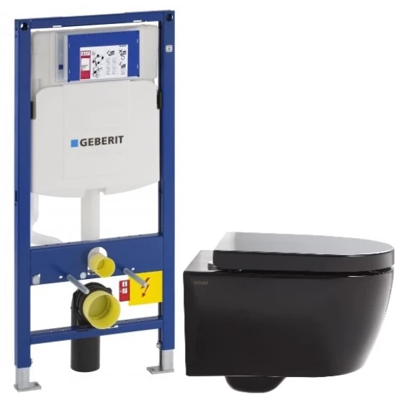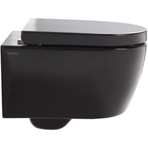 Комплект подвесной унитаз SSWW CT2038BLACK + система инсталляции Geberit 111.300.00.5