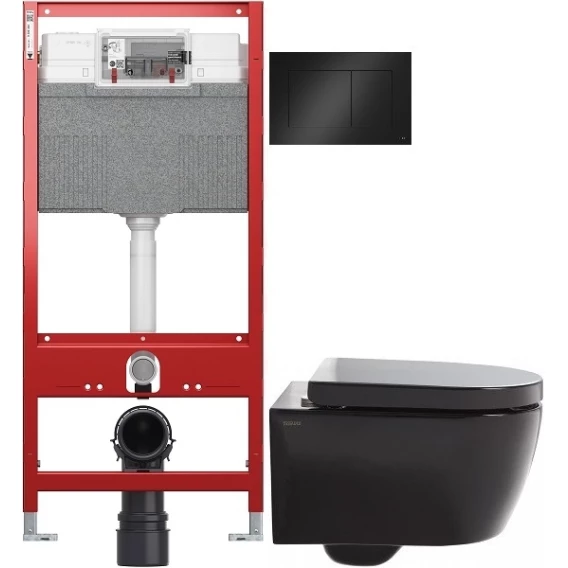 Комплект подвесной унитаз SSWW CT2038BLACK + система инсталляции Tece 9300302 + 9240407
