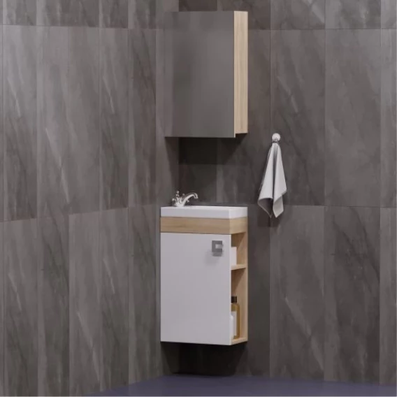 Тумба с раковиной белый глянец/дуб сонома 40 см Corozo Комо SETSD-00000352/UM-COM40/1
