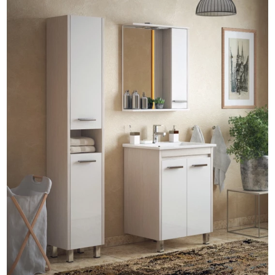 Тумба с раковиной белый глянец/лайн 76,5 см Corozo Лорена SETSD-00000356/SD-00000382