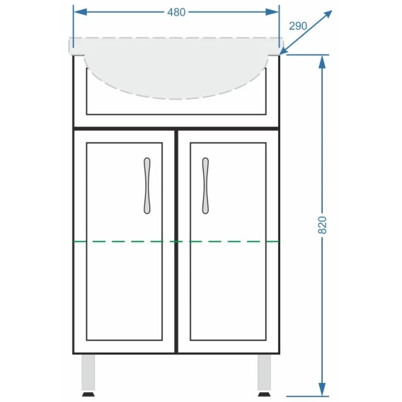 Механизм доводчика, Полочка, Ручки, Ножки, Тумба под раковину, Раковина