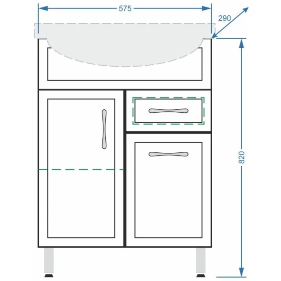 Механизм доводчика, Ящик, Полочка, Ручки, Ножки, Тумба под раковину, Раковина