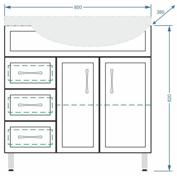 Механизм доводчика, Ящик, Полочка, Ручки, Ножки, Тумба под раковину, Раковина