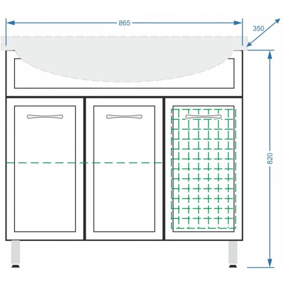 Механизм доводчика, Полочка, Ручки, Бельевая корзина, Ножки, Тумба под раковину, Раковина
