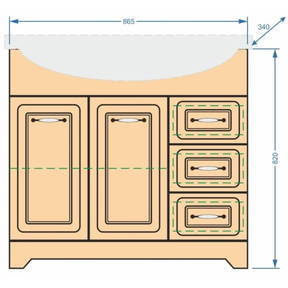 Механизм доводчика, Ящик, Полочка, Ручки, Тумба под раковину, Раковина