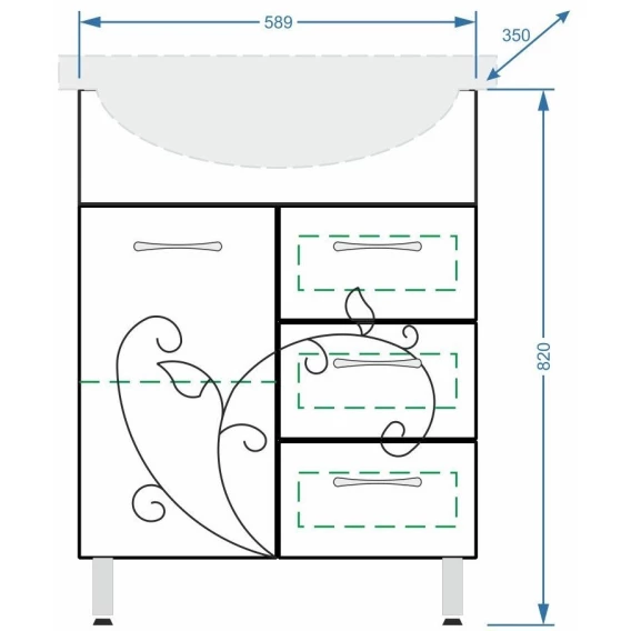 Механизм доводчика, Ящик, Полочка, Ручки, Ножки, Тумба под раковину, Раковина