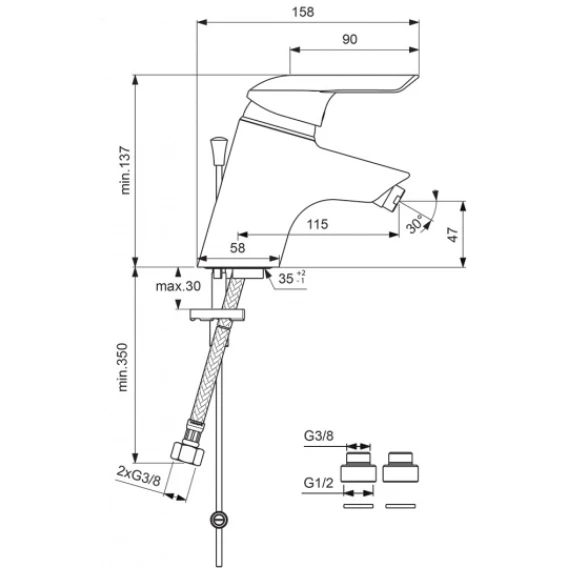 Крепление, Аэратор, Гибкая подводка, Система быстрого монтажа, Переходник для подводки на 1/2''