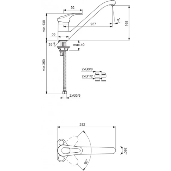Крепление, Аэратор, Гибкая подводка, Переходник для подводки на 1/2''