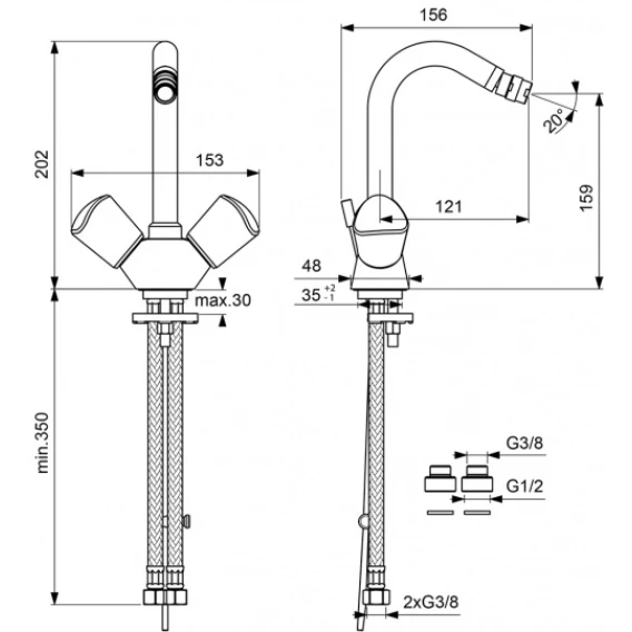 Крепление, Аэратор, Гибкая подводка, Система быстрого монтажа, Переходник для подводки на 1/2''