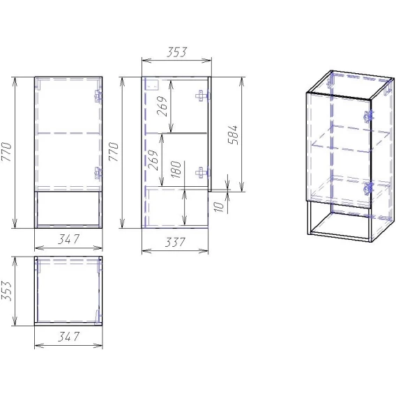 Шкаф одностворчатый 34,7x77 см белый глянец R Dreja Perfecto 99.0810