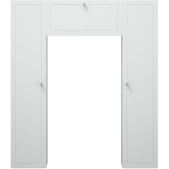 Состоит из 3 отдельных модулей, которые устанавливаются с боков и над унитазом. У боковых элементов 1 распашная дверь. Область внутри разделена на 2 части, в каждой из которых есть вкладная полка. Центральный модуль имеет откидную дверцу. Все двери на петлях с доводчиками. Каждый модуль может быть прикреплён на любом расстоянии от пола.