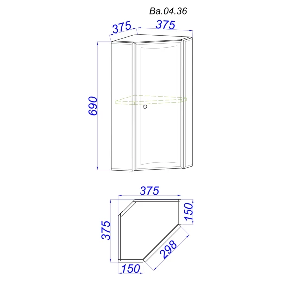Шкафчик угловой навесной белый глянец Aqwella Барселона Ba.04.36