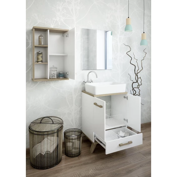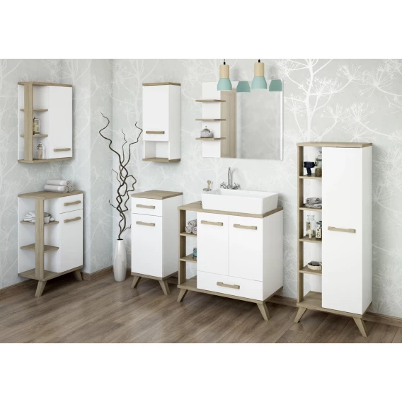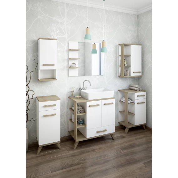 Шкаф подвесной белый матовый/вяз швейцарский Sanflor Ингрид C03688