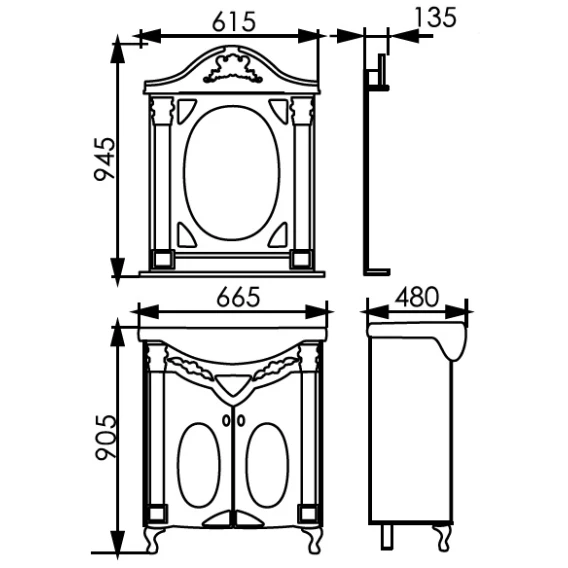 Зеркало 61,5x94,5 см белый жемчуг серебряная патина Atoll Наполеон