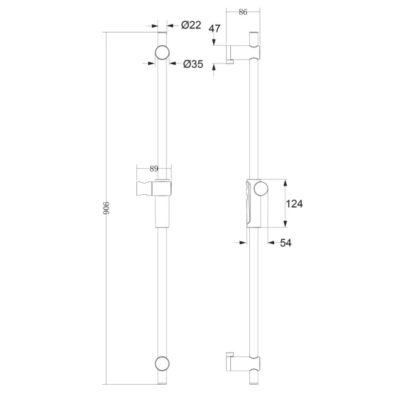 • длина: 90,6 см, регулируемая расстояние между монтажными элементами: 24-85 см